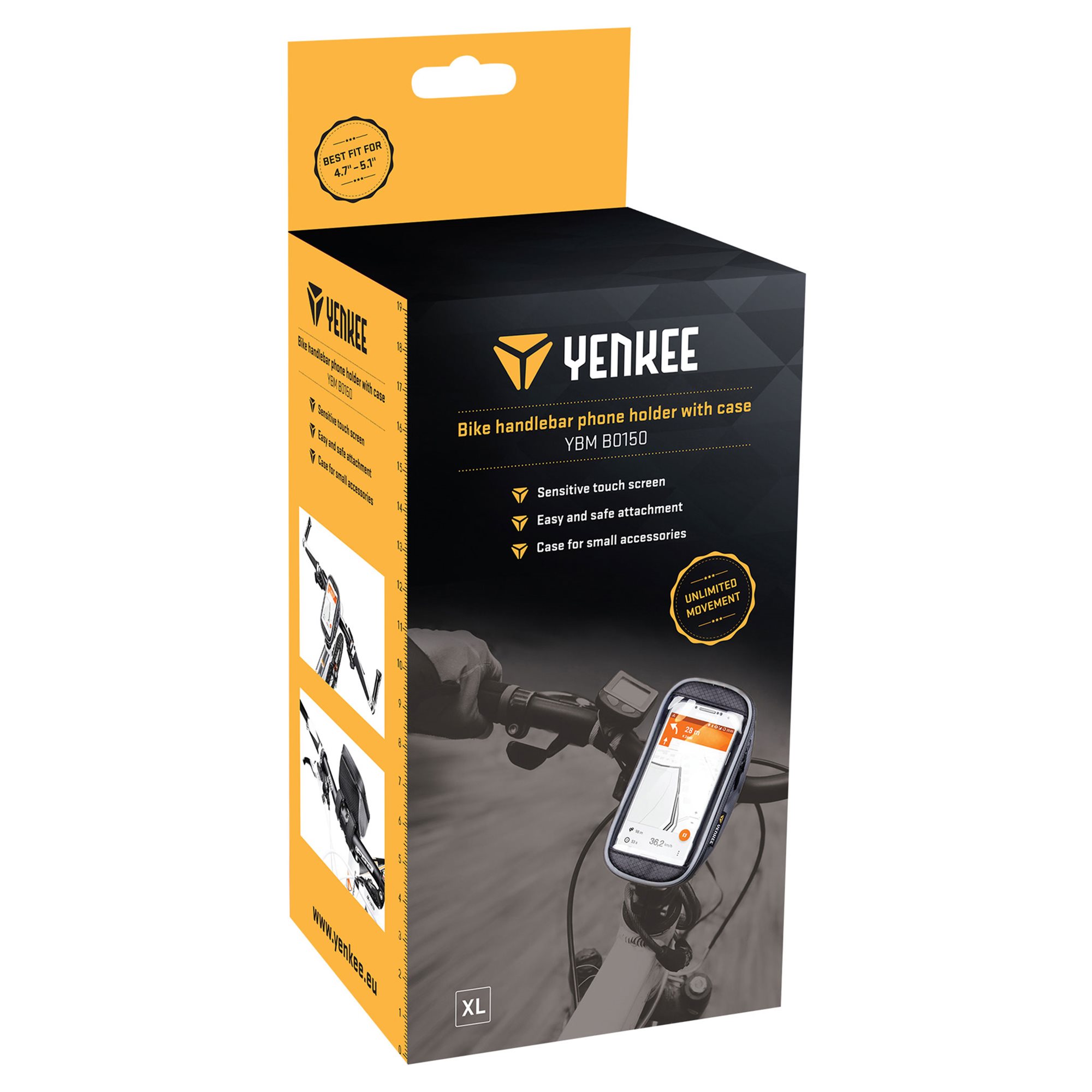 Υποδοχή τηλεφώνου για τιμόνι ποδηλάτου, με θήκη για μικρά αξεσουάρ. Οθόνη αφής υψηλής ευαισθησίας σας επιτρέπει να χρησιμοποιείτε το smartphone σας ενώ οδηγείτε. Σκληρή θήκη παρέχει προστασία από σκόνη, γρατσουνιές και πιτσίλισμα νερού. Για πρόσθετη οδική ασφάλεια, οι πλευρές της θήκης είναι κατασκευασμένες από ανακλαστικά υλικά για καλύτερη ορατότητα στο σκοτάδι.