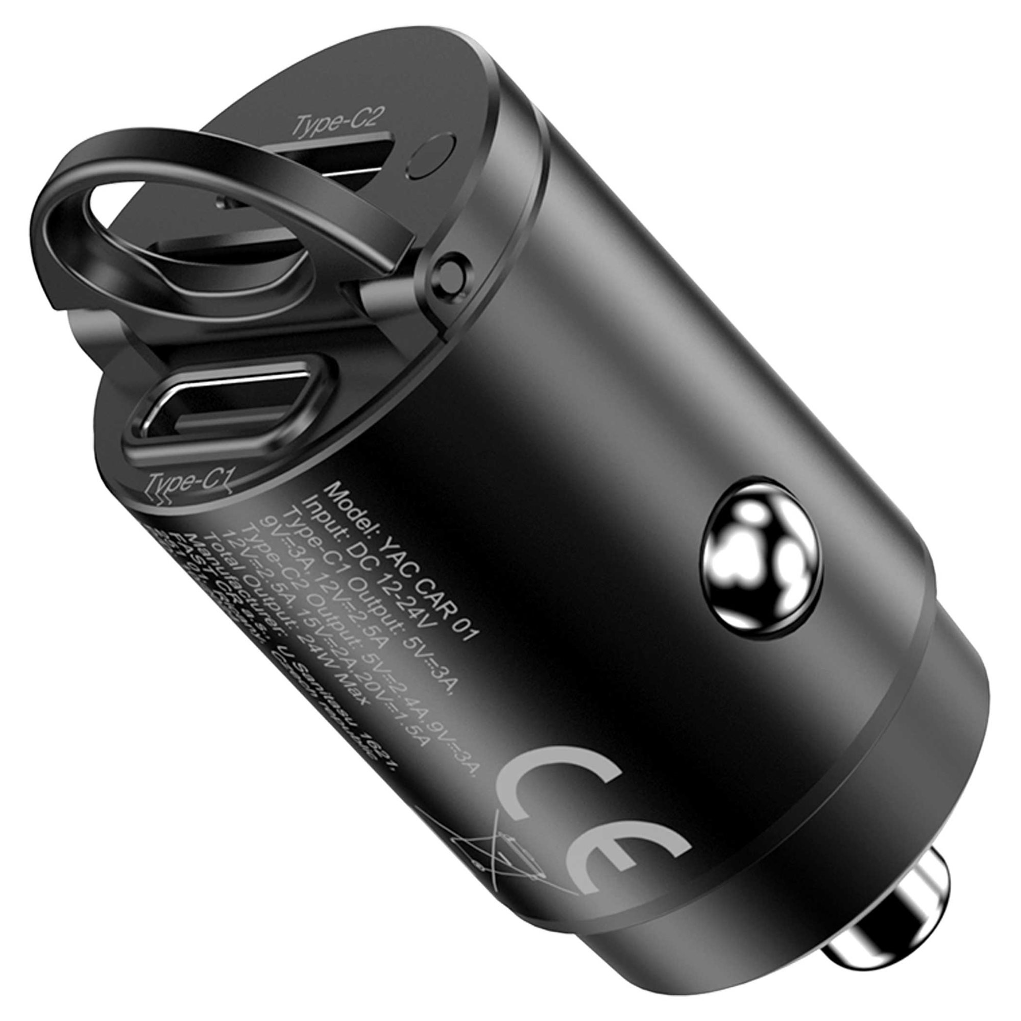 Φορτιστής αυτοκινήτου USB με τεχνολογία γρήγορης φόρτισης Power Delivery και δύο θύρες USB-C.