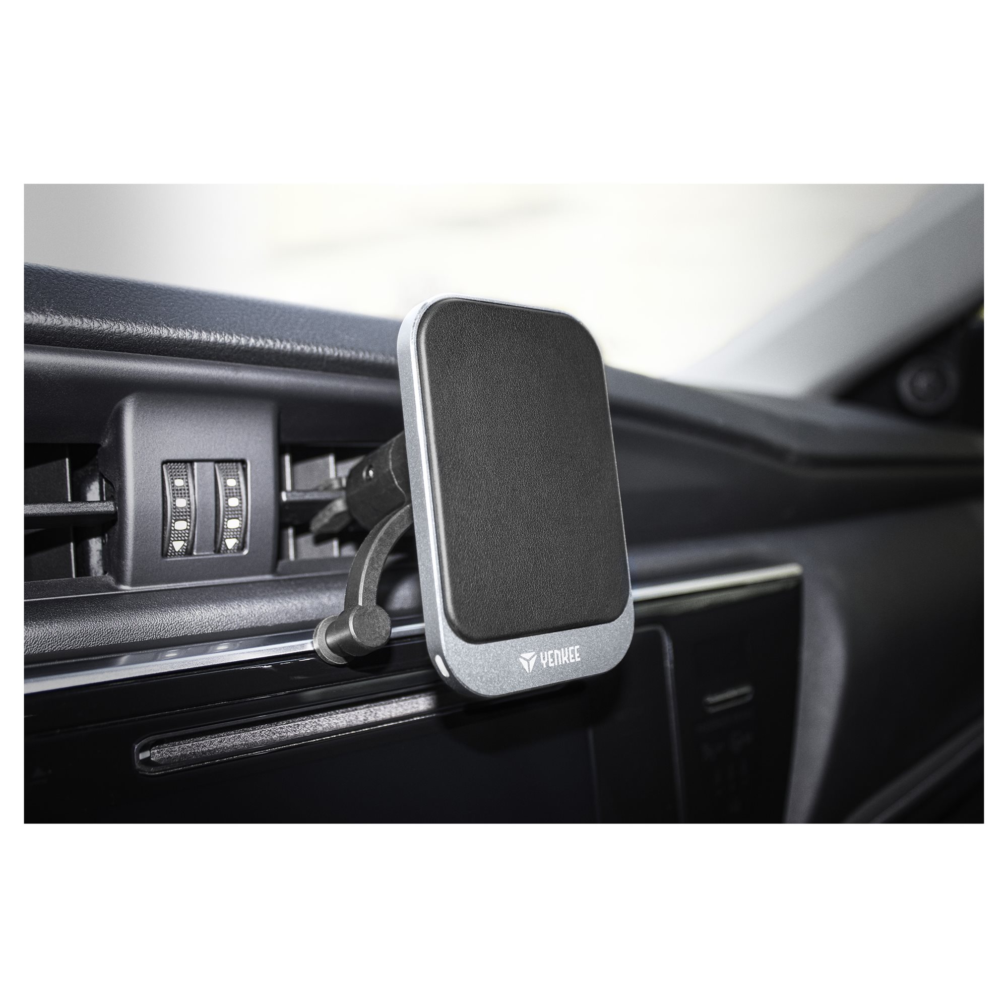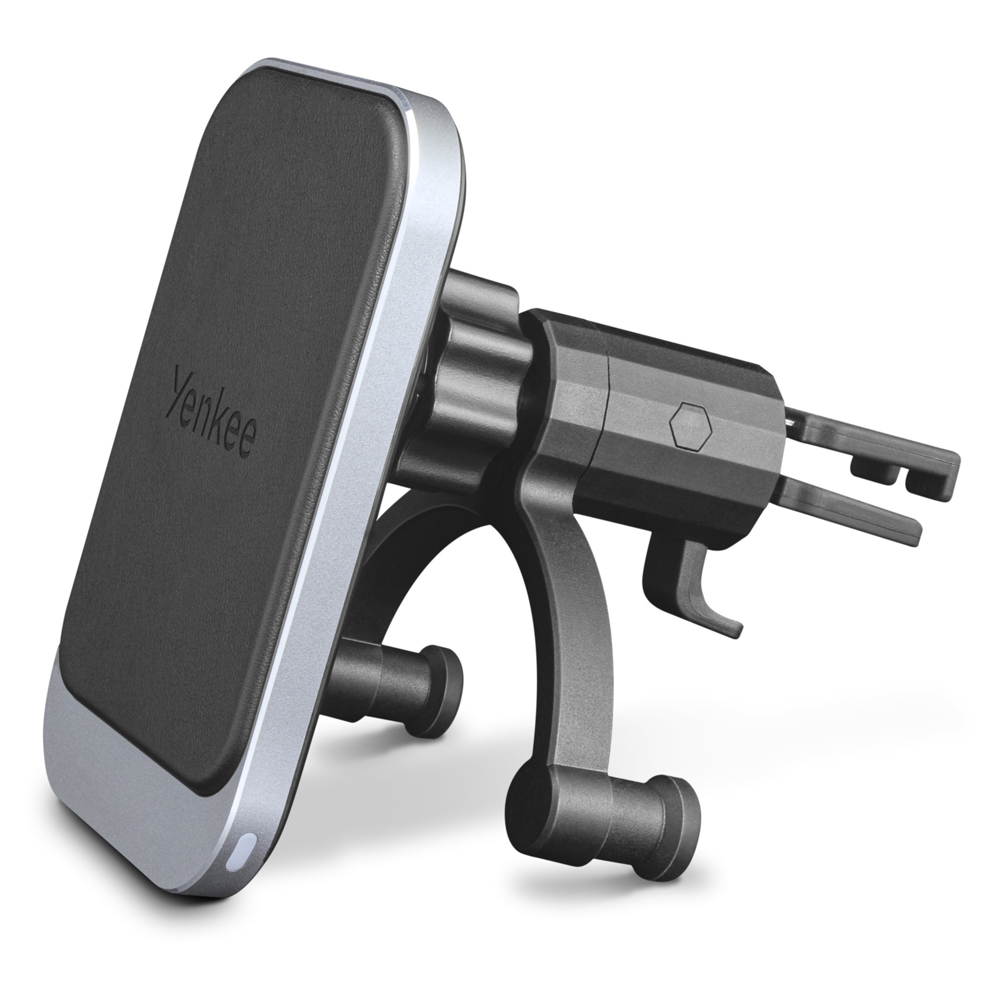 Συνδέστε τον μαγνητικό φορτιστή με ασφάλεια στη σχάρα εξαερισμού στο ταμπλό. Χάρη στον περιστρεφόμενο μεντεσέ, μπορείτε να ρυθμίσετε τη γωνία θέασης του τηλεφώνου στις 360 °, έτσι ώστε η οθόνη να φαίνεται άνετα από τη θέση σας ή από τη θέση του συνοδηγού. Το τηλέφωνο θα παραμείνει στη ρυθμισμένη θέση στον φορτιστή YENKEE YSM 715 - ακόμα κι αν φρενάρετε εκ των προτέρων. Χάρη σε επιλεγμένα υλικά υψηλής ποιότητας από αλουμίνιο και δέρμα, ο φορτιστής θα χωρέσει στο εσωτερικό του οχήματος.