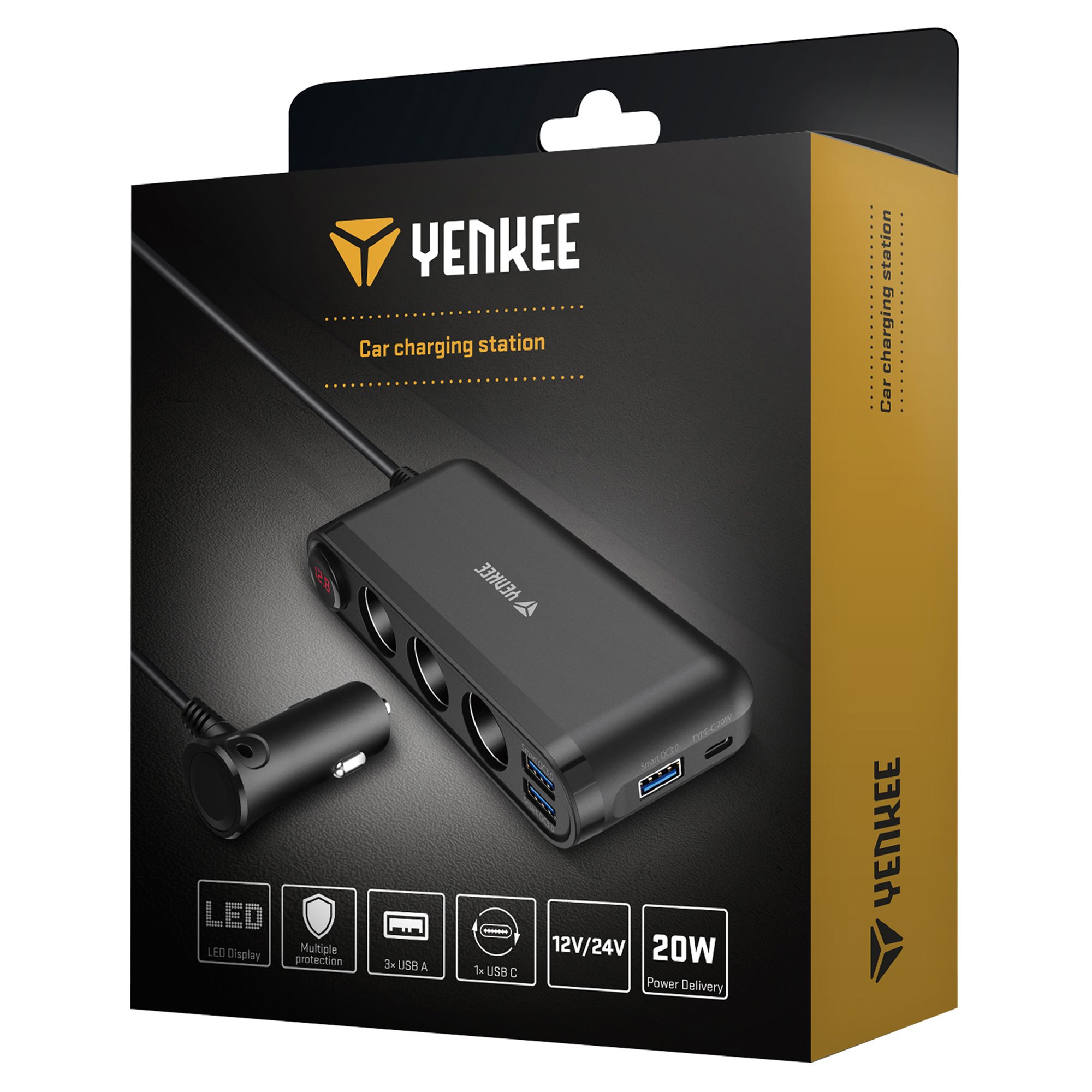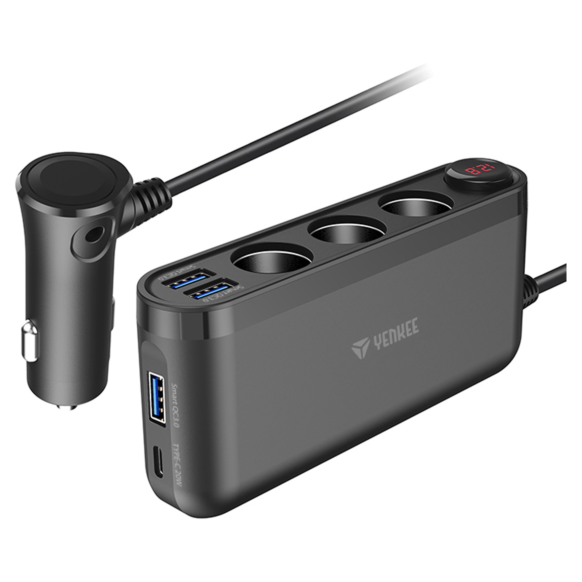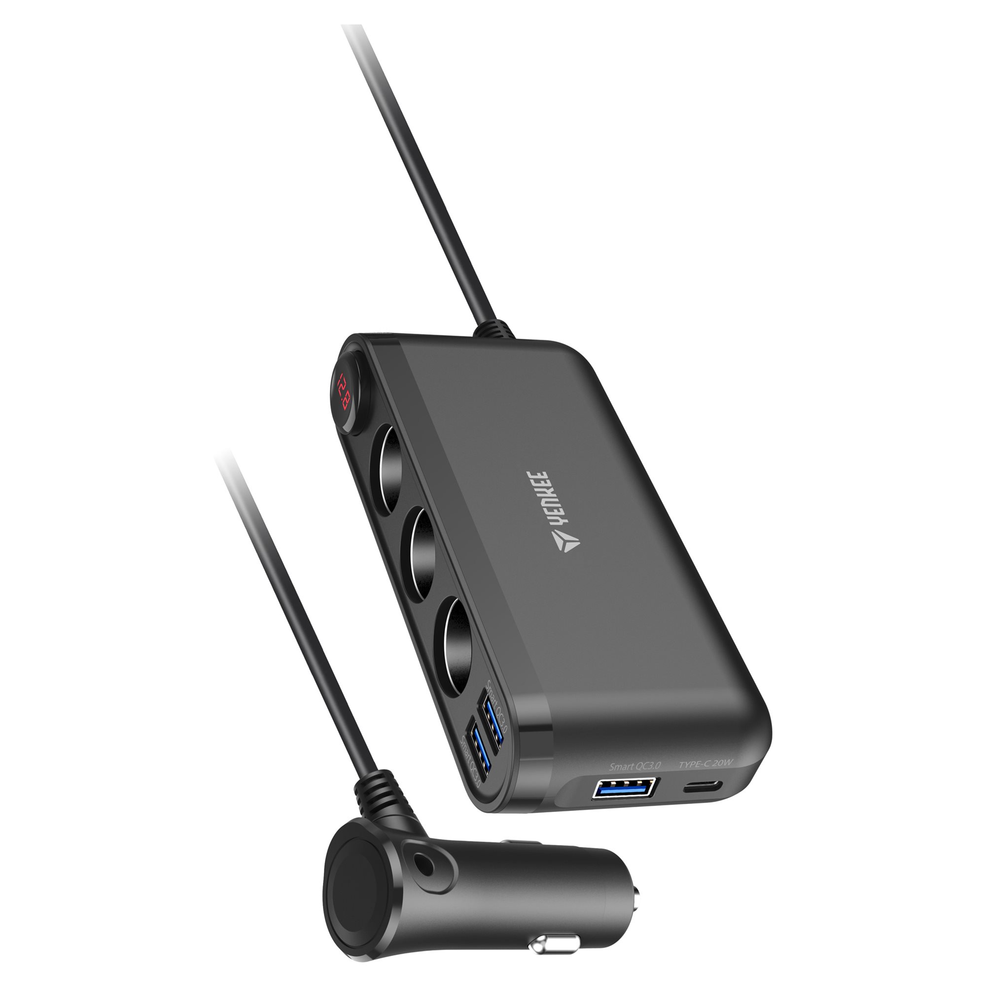 Ο ισχυρός πολυφορτιστής μπορεί να φορτίσει έως επτά συσκευές ταυτόχρονα. Διαθέτει τρεις θύρες USB-A, μία θύρα USB-C και τρεις εξόδους 12 V.