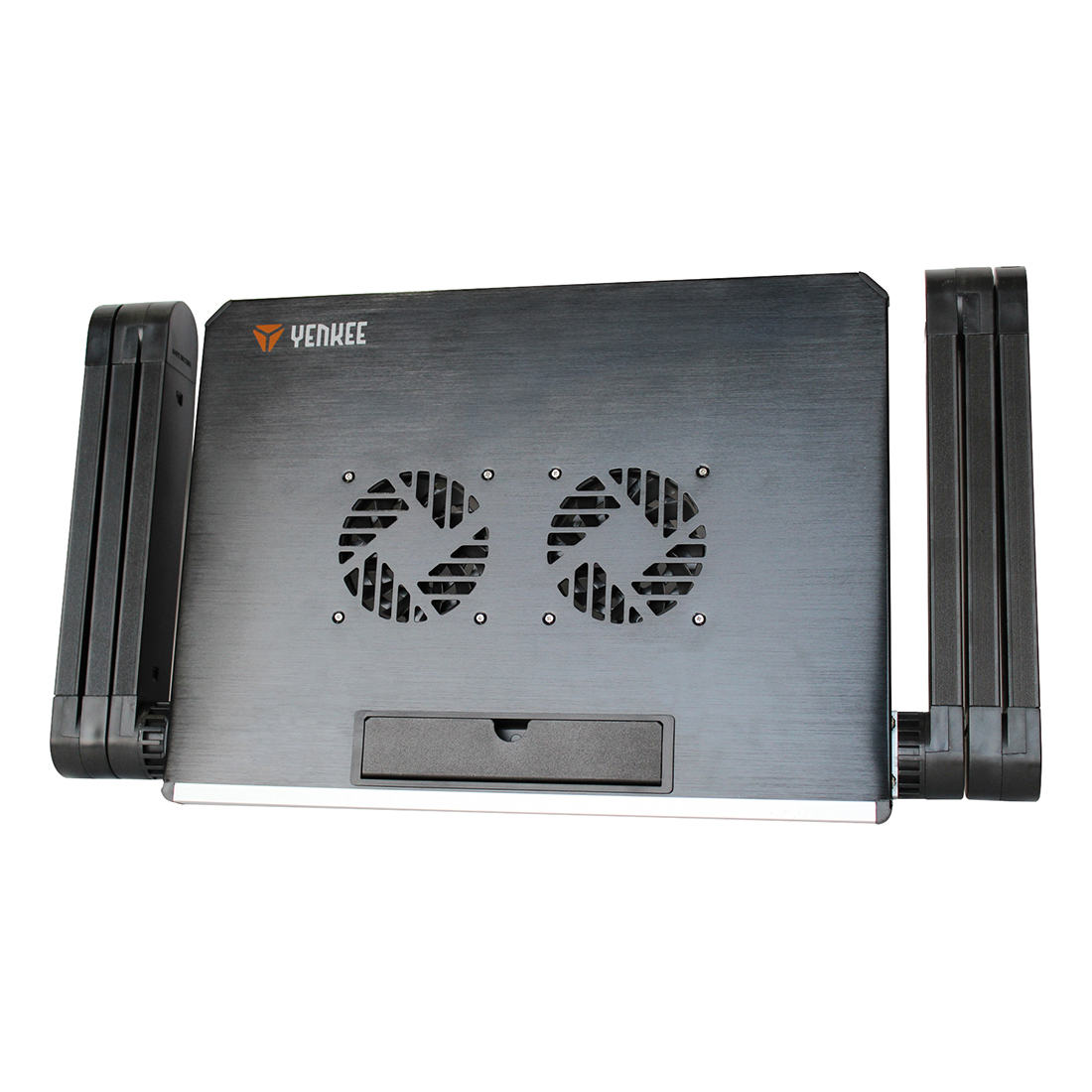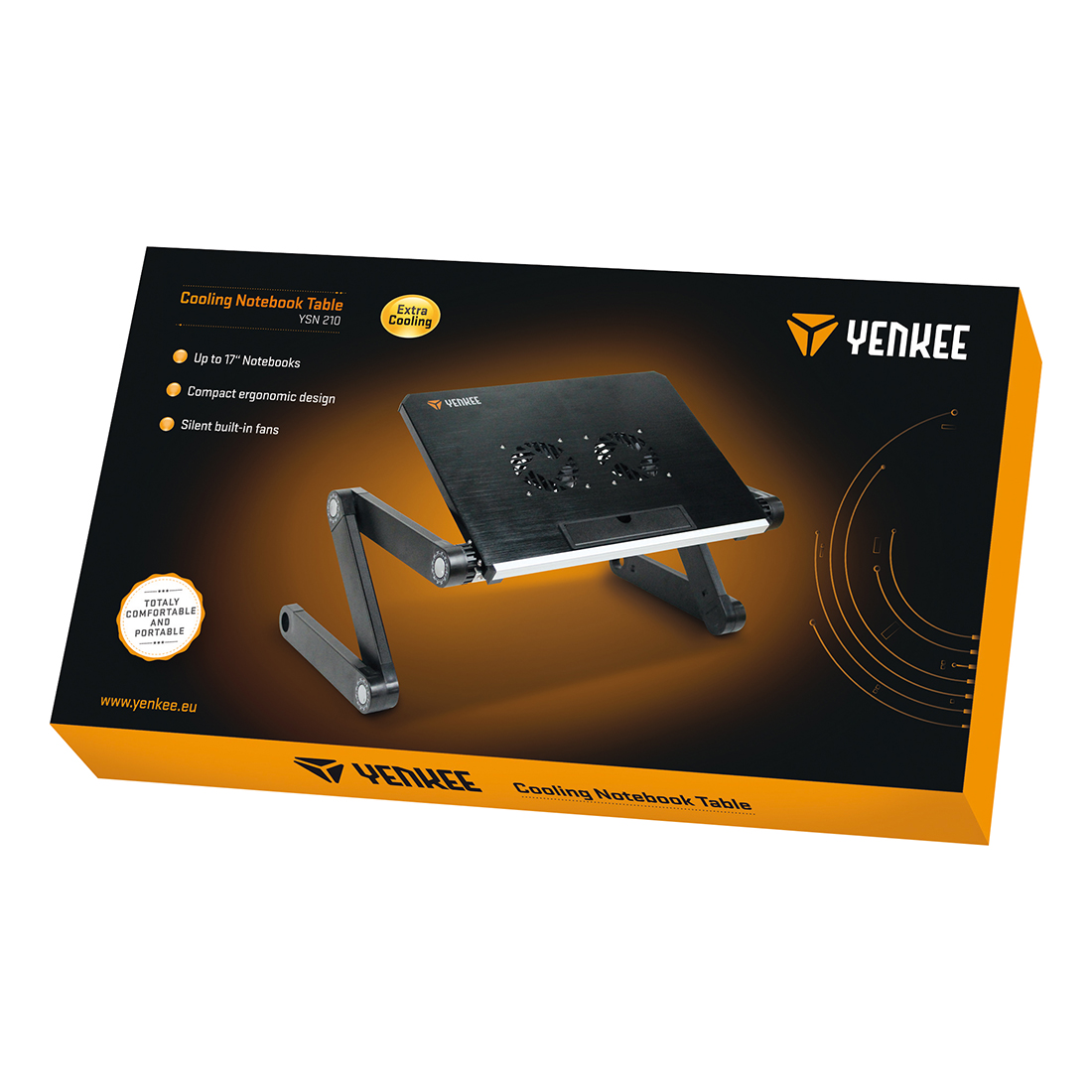 Επιφάνεια ψύξης κάτω από φορητούς υπολογιστές έως και 17" σε μέγεθος. Η κατασκευή από αλουμίνιο και οι δύο ανεμιστήρες 80 mm διασφαλίζουν επαρκή διασπορά της θερμότητας και βέλτιστη ψύξη του εξοπλισμού σας. Συνολικά έξι περιστρεφόμενες (360°) αρθρώσεις σας επιτρέπουν να τοποθετήσετε τον φορητό υπολογιστή στη βέλτιστη θέση για εργασία ή παιχνίδι και η υψηλή σταθερότητα είναι εγγυημένη ακόμα και σε άνισες επιφάνειες.