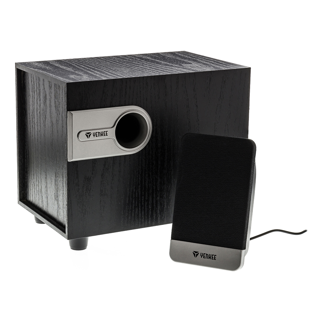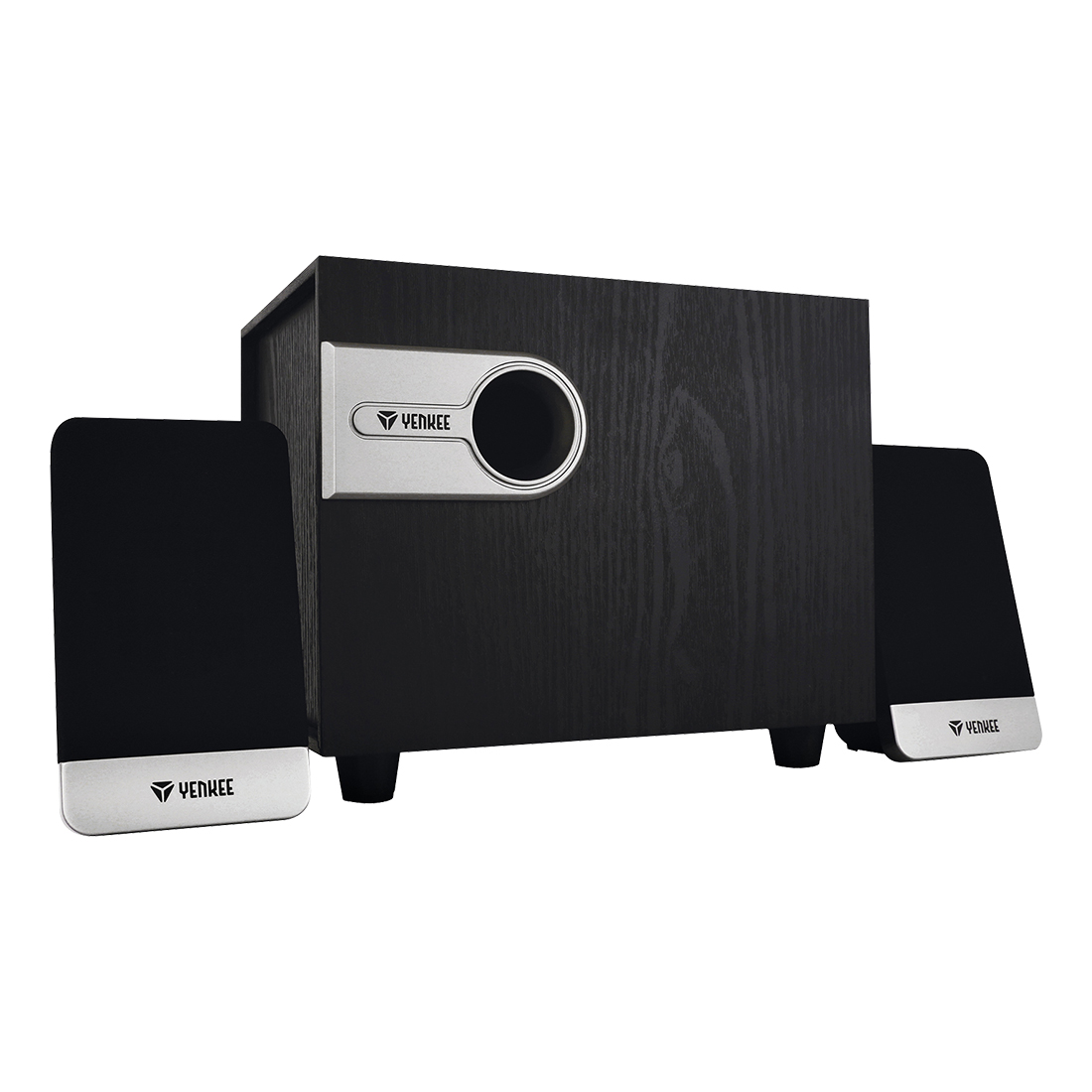 Το subwoofer είναι κατασκευασμένο από ποιοτική ινοσανίδα για τη μείωση των αντηχήσεων. Η θύρα bass reflex παρέχει καλά ισορροπημένα μπάσα τα οποία μπορούν να ρυθμιστούν και από ρυθμιστικό στο πλάι του subwoofer.