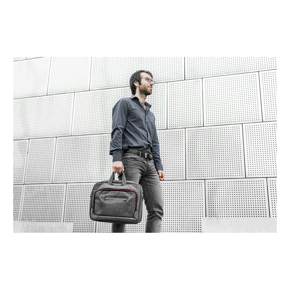 Τσάντα λάπτοπ με πολλά διαμερίσματα κατάλληλη για λάπτοπ 15,6 ιντσών. Είναι κατάλληλο για επιχειρηματική ή σπορ καθημερινή χρήση.Εσωτερικά διαμερίσματα με μαλακή επένδυση για λάπτοπ μεγέθους έως 15,6" ή tablet μεγέθους έως 10,1" με αρκετό χώρο και βέλτιστη προστασία των συσκευών σας από τυχαία χτυπήματα.Η τσάντα μπορεί να τοποθετηθεί σε λαβή βαλίτσας τρόλει για ευκολία στο ταξίδι.Δύο μπροστινές τσέπες είναι κατάλληλες για είδη αξίας, έγγραφα και αντικείμενα που χρησιμοποιείτε συχνά.