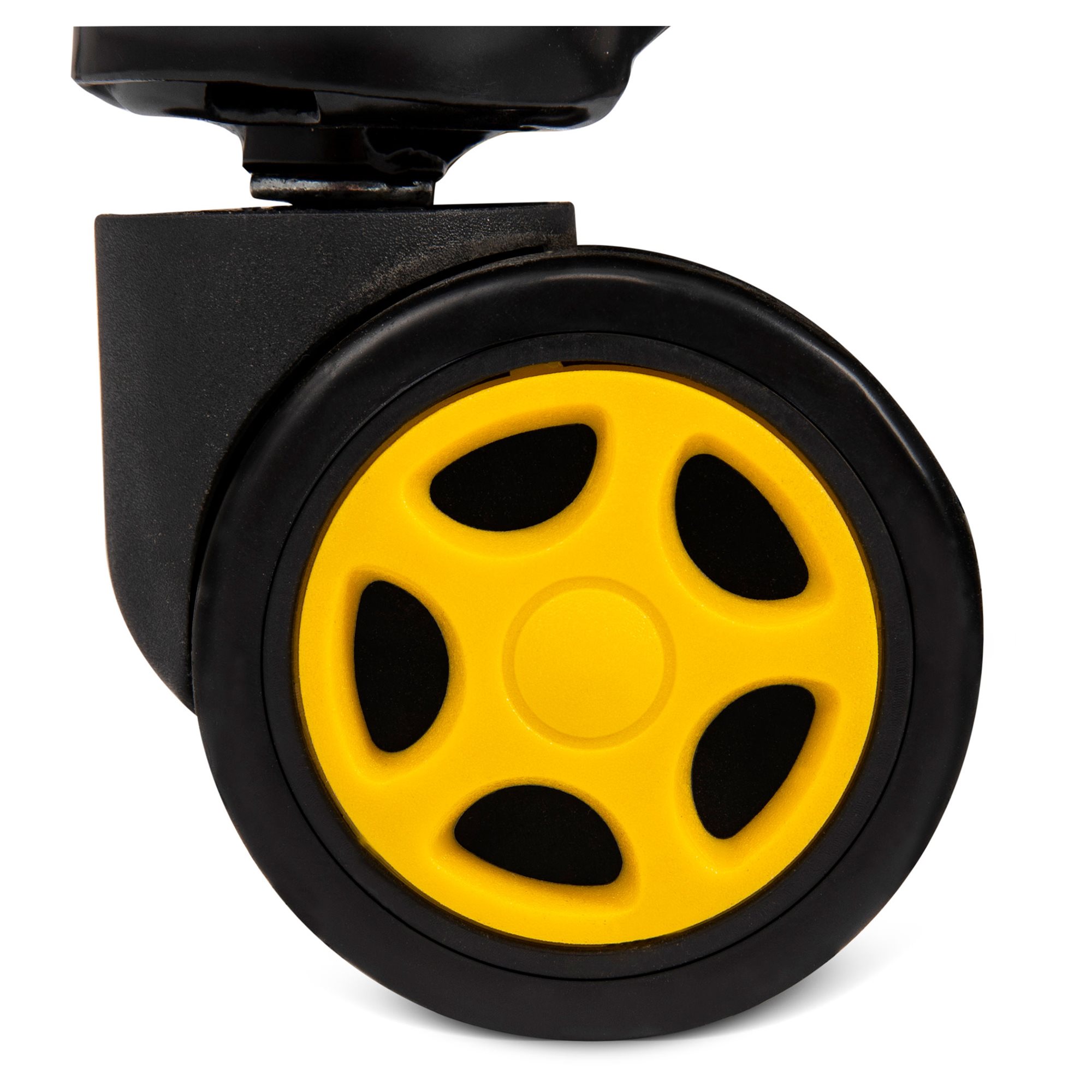 Και ησυχία και ανθεκτικότητα. Χάρη στα νάιλον ροδάκια μου των 60 mm με επένδυση από μαλακή πολυουρεθάνη, η κίνησή μου είναι αθόρυβη και κατάλληλη για οποιαδήποτε επιφάνεια. Επίσης, χάρη στον ανθεκτικό σχεδιασμό μου, μπορώ να αντέξω φορτία έως και 150 kg.