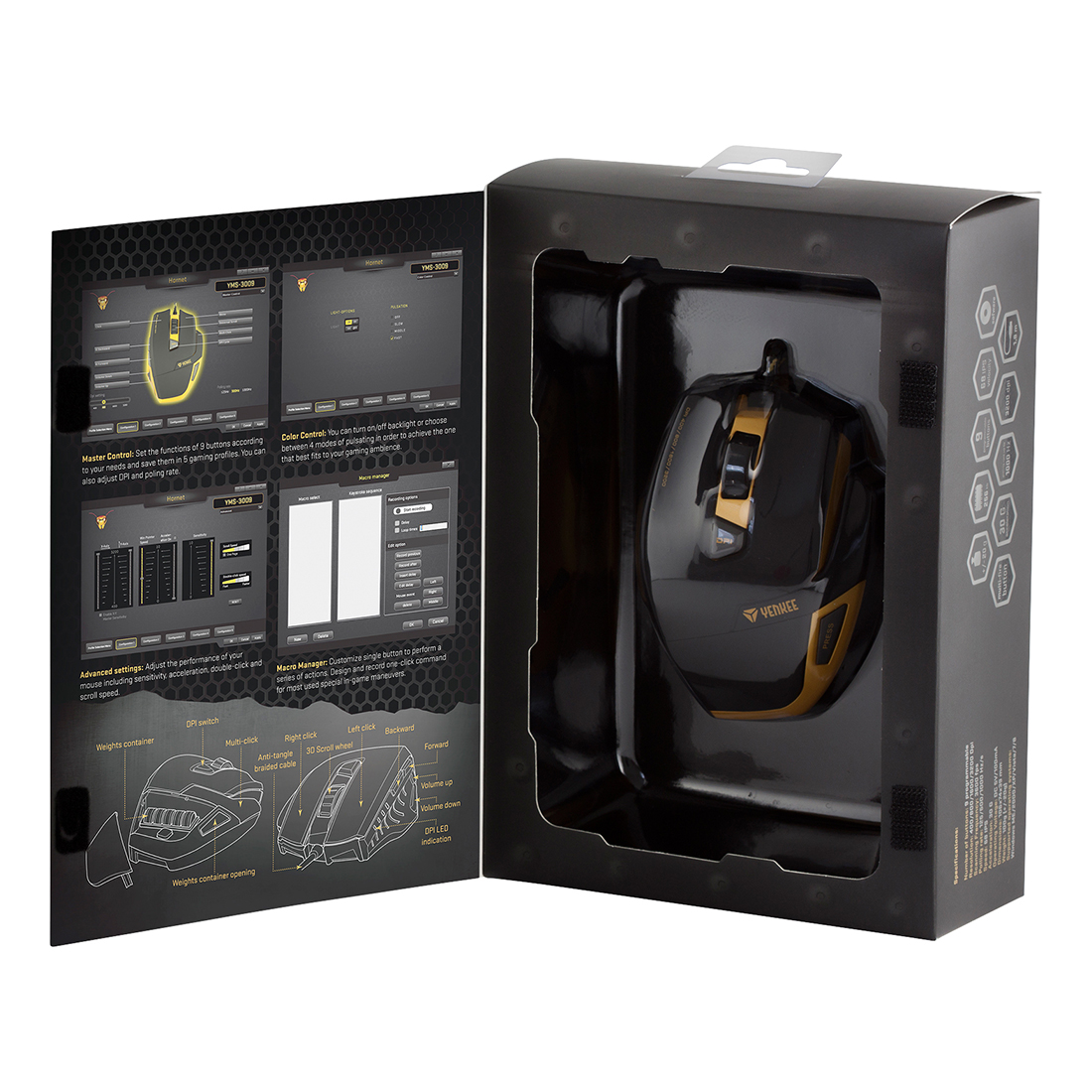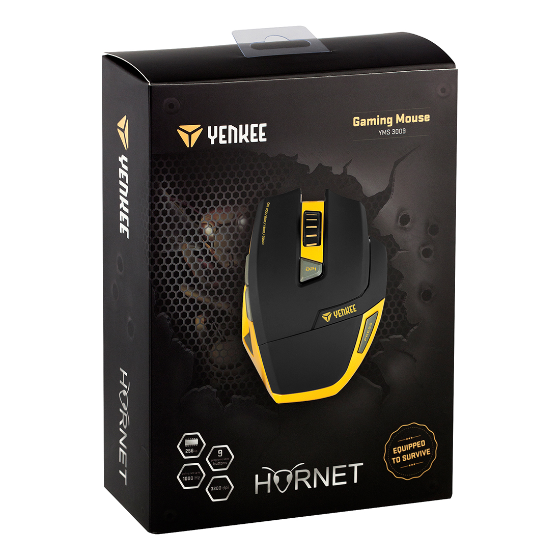 Το οπτικό ποντίκι Gaming HORNET YMS 3900 έχει σχεδιαστεί για προχωρημένους παίκτες παιχνιδιών υπολογιστή που αναζητούν όχι μόνο ποιότητα αλλά και προηγμένο σχεδιασμό. Το βέλτιστο όπλο "επιβίωσης" και η πλήρης χρήση του στη διάρκεια των αποστολών υποστηρίζεται από συνολικά 9 προγραμματιζόμενα κουμπιά, περιλ. του εργονομικού κουμπιού "Ριπής" στη δεξιά πλευρά του ποντικιού.