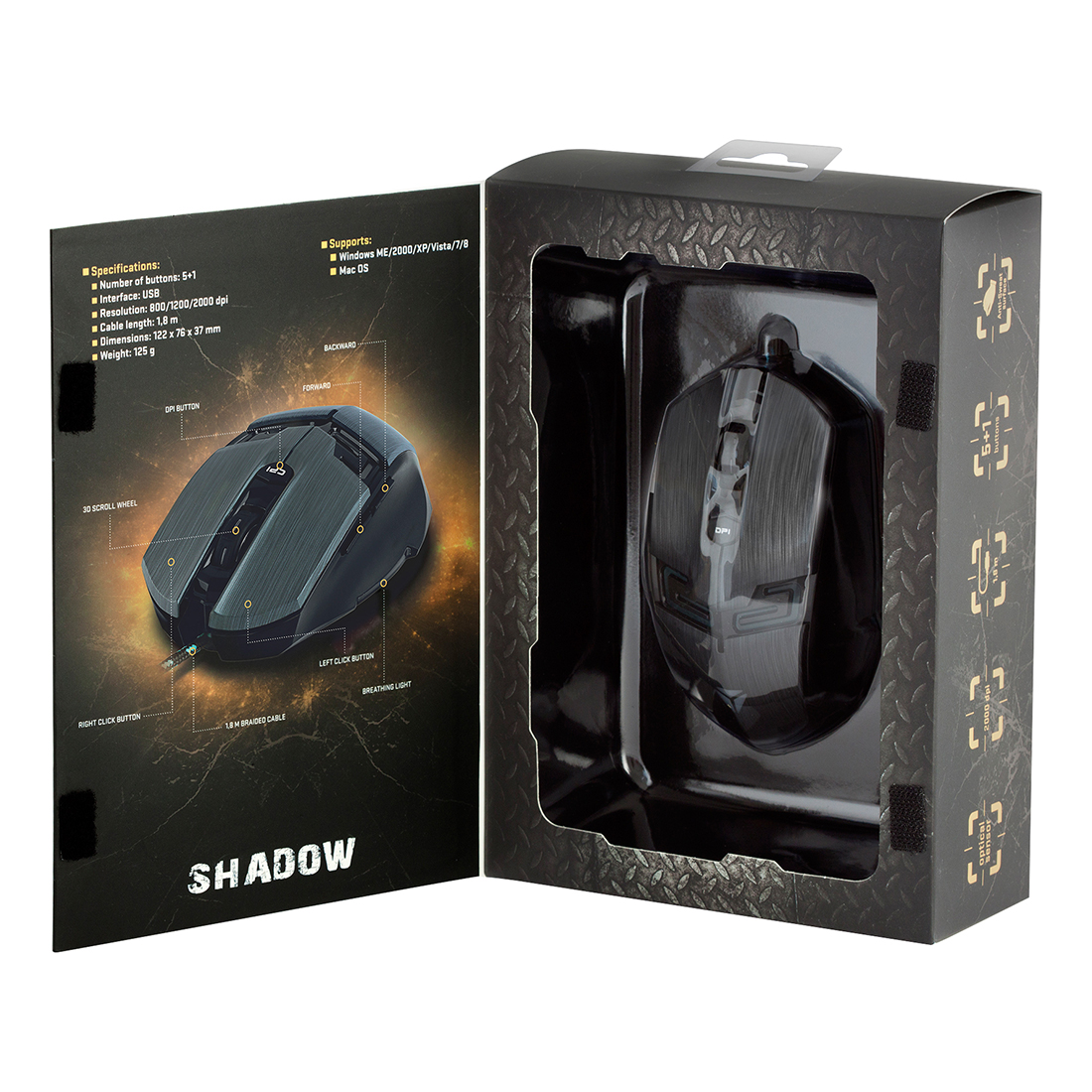 Το SHADOW YMS 37 έχει σχεδιαστεί γαι λιγότερο απαιτητικούς και περιστασιακούς παίκτες στον υπολογιστή. Το ποντίκι περιέχει έναν οπτικό αισθητήρα ακριβείας με ρυθμιζόμενη ανάλυση 800/1200/2000 DPI.