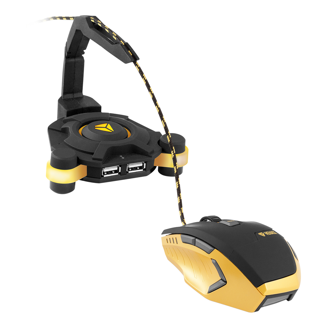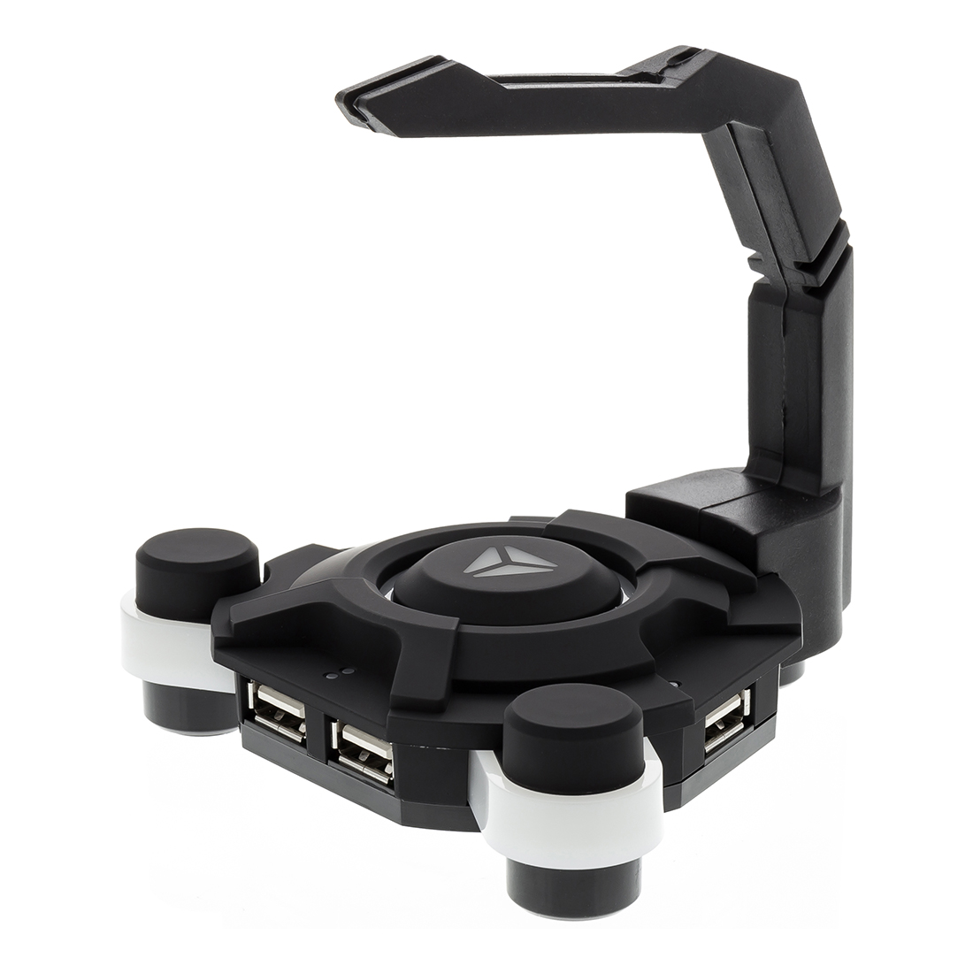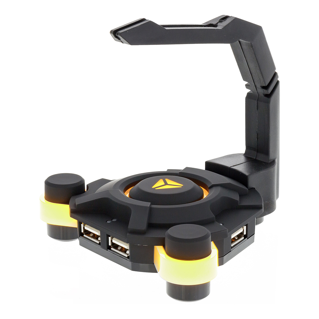 4 θύρες USB μπορούν να διαχειριστούν όλα τα καλώδια USB στην επιφάνεια του γραφείου σας. Ευχάριστος πορτοκαλί οπίσθιος φωτισμός με διακόπτη on/off θα σας προσφέρει τη σωστή ατμόσφαιρα για gaming. Το εύκαμπτο στήριγμα καλωδίου πολλαπλών κατευθύνσεων είναι αποσπώμενο. Η πλήρης ευστάθεια εξασφαλίζεται με εσωτερικά αντίβαρα και τριγωνική επιφάνεια βάσης από σιλικόνη.