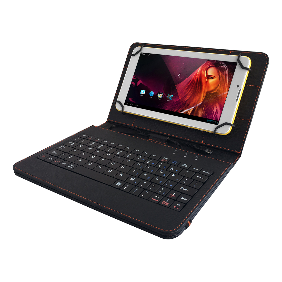 Καινοτόμο σύστημα στερέωσης στις γωνίες διασφαλίζει την ασφαλή μεταφορά και εμποδίζει να πέσει το tablet από τη θήκη. Ενσωματωμένο καλώδιο micro USB για εύκολη σύνδεση του tablet σας σε πληκτρολόγιο.