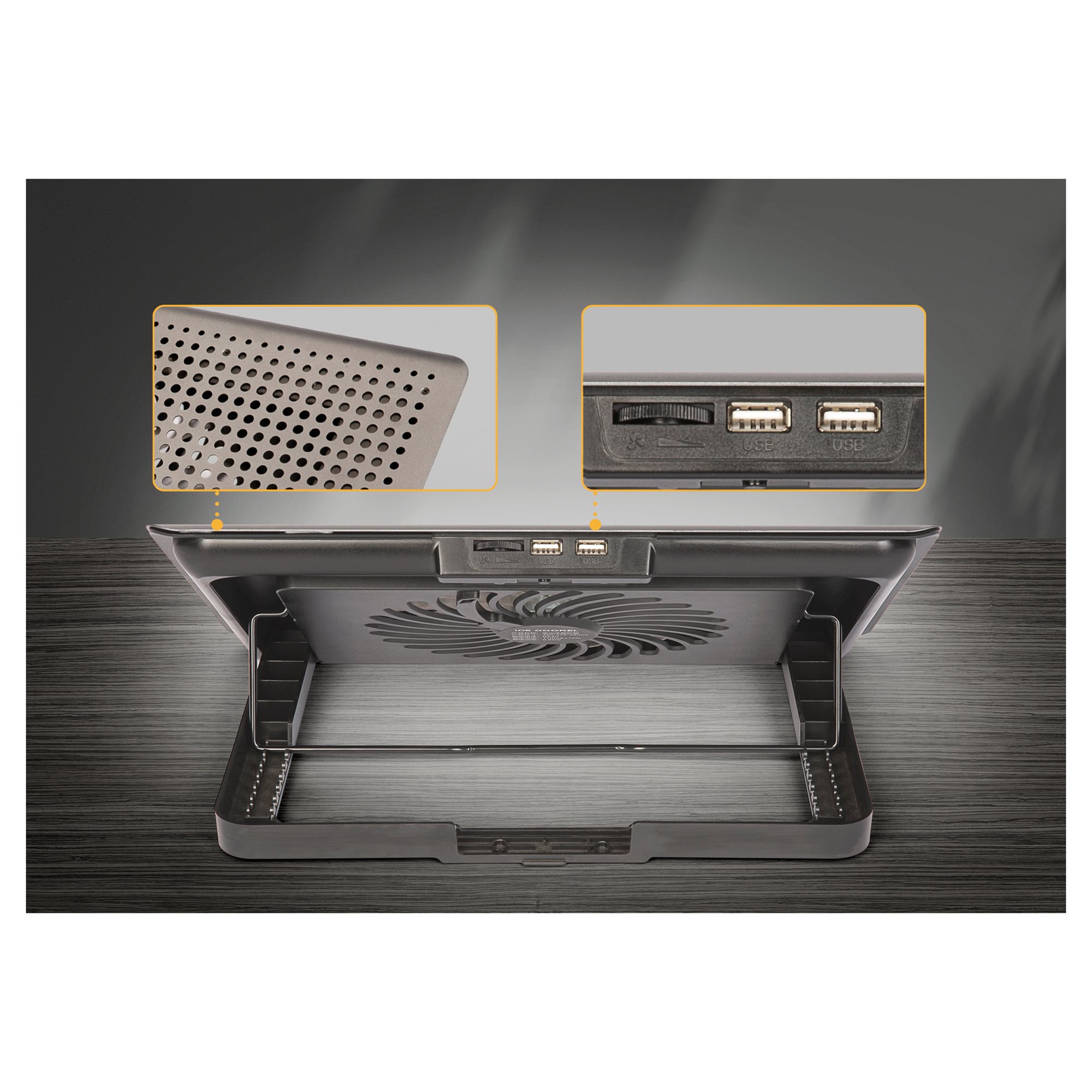 Η βάση YENKEE YSN 15 διαθέτει αντιολισθητική επιφάνεια. Όταν ο φορητός σας υπολογιστής υποστηρίζεται από μια βάση ψύξης, συγκρατείται σε σταθερή θέση. Επιπλέον, μπορείτε να ρυθμίσετε το ύψος της βάσης έως και 14,5 εκατοστά, κάνοντας την εργασία σας πιο άνετη είτε βρίσκεστε στο γραφείο είτε σε εξωτικές διακοπές είτε στην παραλία ή στην αγαπημένη σας πισίνα. Εύκολα και χωρίς προβλήματα, επειδή ο υπολογιστής σας διαθέτει την απαραίτητη ψύξη για να συνεχίσει να αποδίδει με αξιοπιστία.