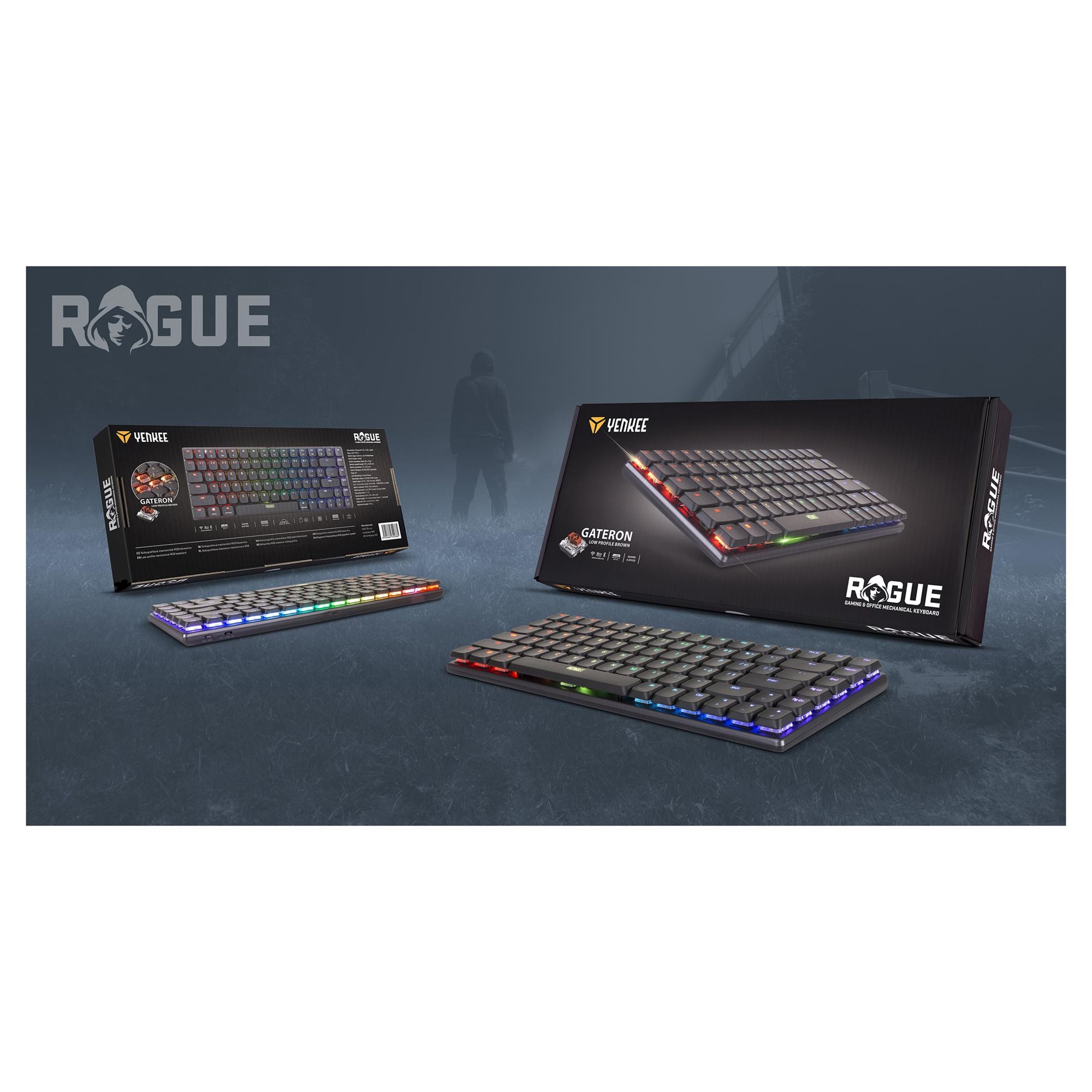 Το χαμηλού προφίλ μηχανικό RGB πληκτρολόγιο YKB 3700 ROGUE θα γίνει γρήγορα φίλος σας. Αν σας αρέσουν τα πολυλειτουργικά αξεσουάρ και αναζητάτε ένα πληκτρολόγιο που μπορείτε να χρησιμοποιήσετε τόσο για τυπικά καθήκοντα εργασίας όσο και για ατελείωτες ώρες gaming, τότε το ROGUE είναι ακριβώς αυτό που ζητάτε. Το λεπτό του σώμα, σε συνδυασμό με το χαμηλό προφίλ και το μικρό συνολικό βάρος του το κάνουν ένα φίλο με άγριες διαθέσεις. Ο συμπαγής του σχεδιασμός διατηρεί όλες τις σημαντικές λειτουργίες του πληκτρολογίου, αλλά εξοικονομεί και αρκετό πολύτιμο χώρο στην επιφάνεια του γραφείου σας.
