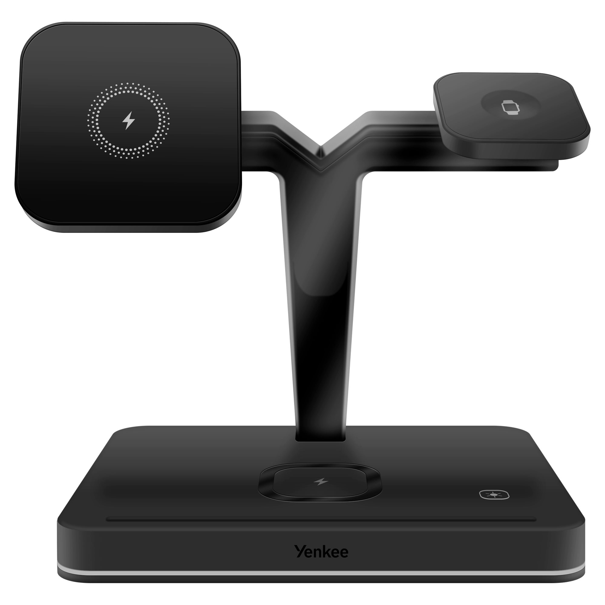 Ο 3 σε 1 μαγνητικός φορτιστής YAC YENKEE 5320 3 είναι πλήρως συμβατός με Apple MagSafe και έχει σχεδιαστεί ειδικά για iPhone σειράς 12 και νεότερων μοντέλων. Χάρη στην έξυπνη αναγνώριση θέσης, απλά κρατήστε τη συσκευή στη θέση της και ο μαγνήτης θα κεντράρει τη συσκευή, για τη μέγιστη αποδοτικότητα της ασύρματης φόρτισης. Η ισχύς εξόδου 15 W διασφαλίζει ότι η συσκευή θα φορτίζεται πολύ γρήγορα. Ο φορτιστής YAC YENKEE 5320 μπορεί επίσης να φορτίζει ρολόι Apple Watch, ακουστικά AirPods ή άλλα ακουστικά που υποστηρίζουν ασύρματη φόρτιση. Απλά τοποθετήστε τον πάνω στον βραχίονα ή τοποθετήστε τη θήκη σωστά και η φόρτιση θα αρχίσει αυτόματα.