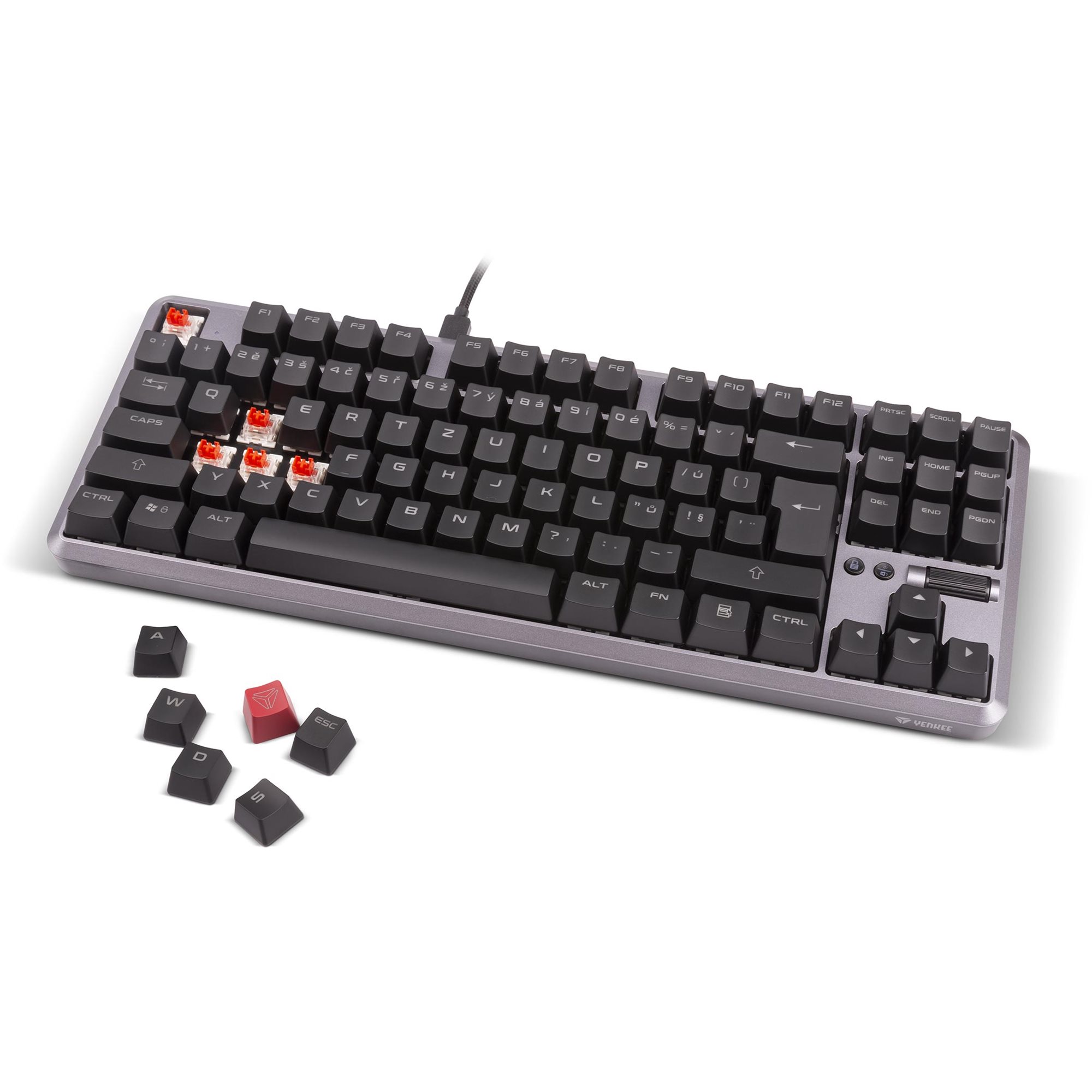 Το σώμα μου έχει συμπαγείς διαστάσεις αλλά και αριθμητικό πληκτρολόγιο, και δεν πιάνει άσκοπα πολύ χώρο στο γραφείο σου. Αυτό σημαίνει ότι θα έχεις ακόμα περισσότερο χώρο για τον χειρισμό του ποντικιού. Μπορείς να χρησιμοποιήσεις το παρεχόμενο πλεκτό καλώδιο με σύνδεσμο USB-C για σύνδεση στο μηχάνημα gaming που χρησιμοποιείς, επιτυγχάνοντας πολύ χαμηλό χρόνο απόκρισης του πληκτρολογίου.