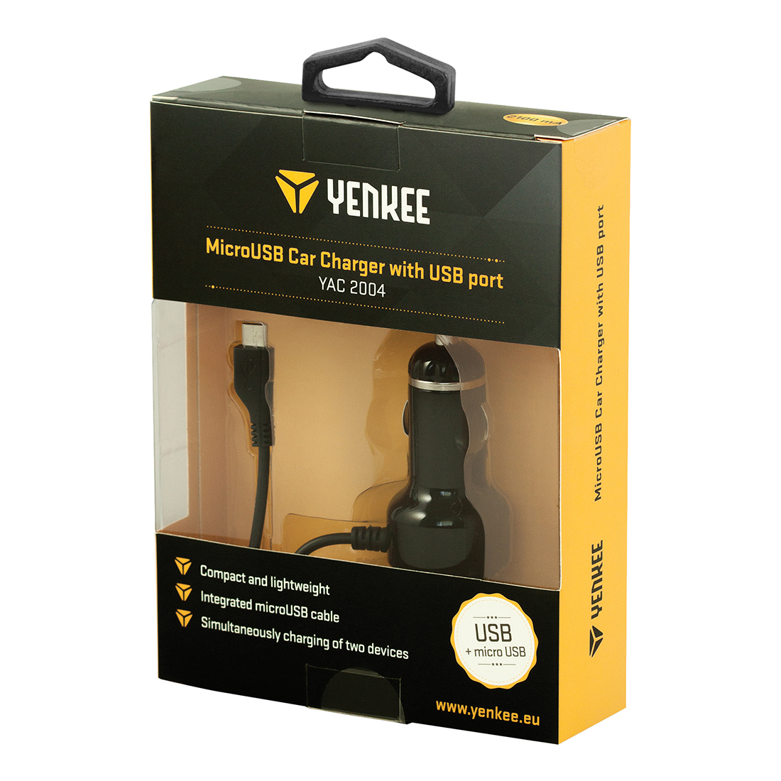 Φορτιστής αυτοκινήτου με ενσωματωμένο καλώδιο micro USB (μέγ. μήκος 1,5 m) και με πρόσθετη θύρα USB. Συμβατός με ευρύ φάσμα συσκευών micro USB και USB.