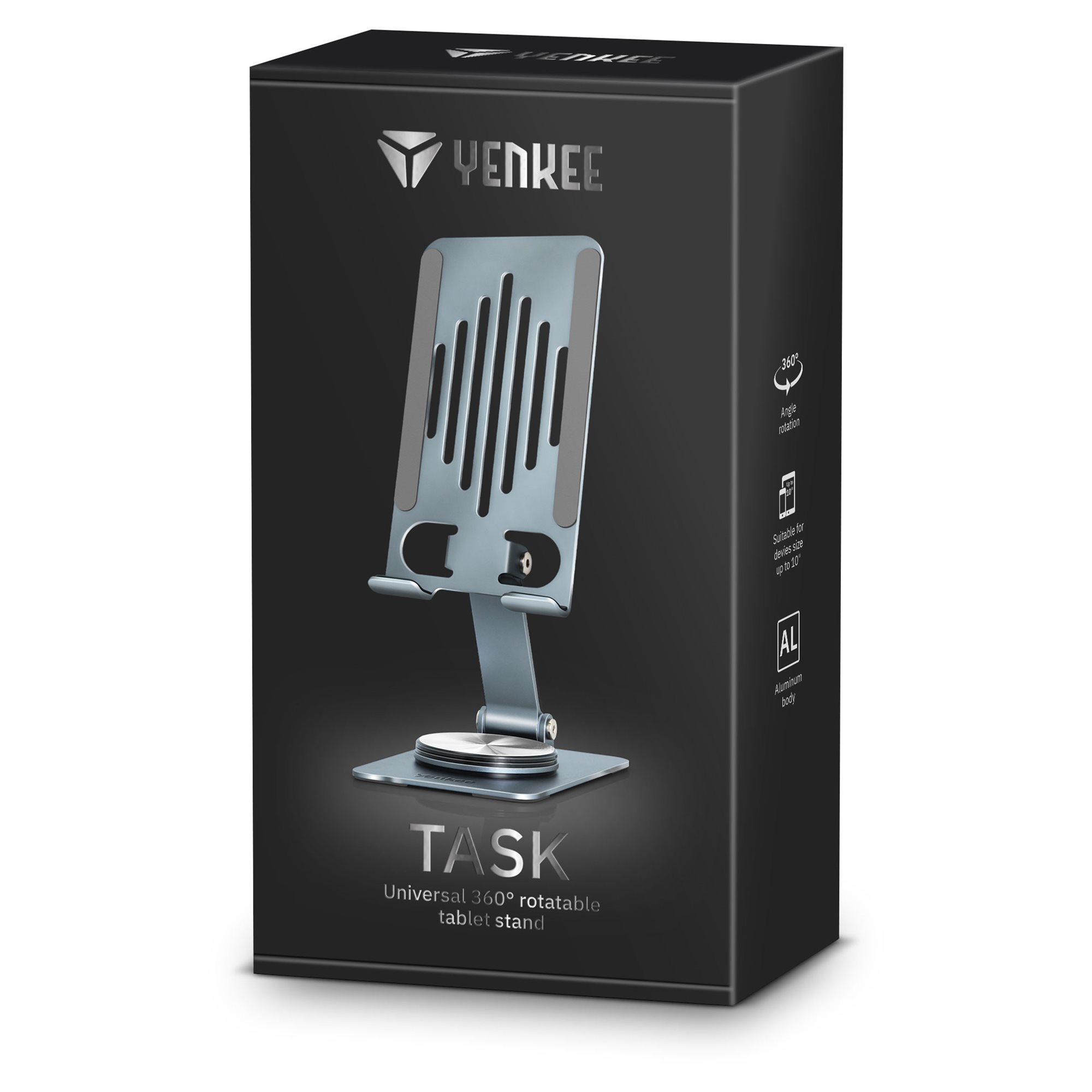 Η γενική περιστρεφόμενη και τοποθετούμενη βάση έχει σχεδιαστεί ειδικά για tablet έως 10". Η συμπαγής και ανθεκτική κατασκευή από κράμα αλουμινίου εξασφαλίζει σταθερότητα και μακροζωία. Με μοντέρνο σχεδιασμό, η βάση φέρνει όχι μόνο πρακτική λειτουργικότητα, αλλά και ένα κομψό στοιχείο στον χώρο εργασίας σας.