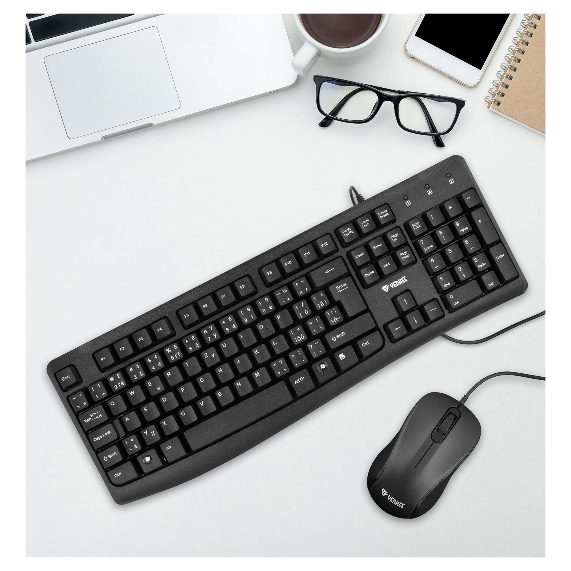 Είμαι ένα τέλειο σετ ανθεκτικού πληκτρολογίου και πανίσχυρου ποντικιού, έτοιμο για χρήση σε περιβάλλον σπιτιού αλλά και γραφείου. Χάρη στον κομψό μου αλλά μινιμαλιστικό σχεδιασμό, μπορώ να ταιριάζω οπουδήποτε. Με τη μαύρη μου εμφάνιση, δεν θα επηρεάσω τον σχεδιασμό της επιφάνειας του γραφείου σου και θα σου επιτρέπω να συγκεντρώνεσαι συνεχώς στην εργασία σου.