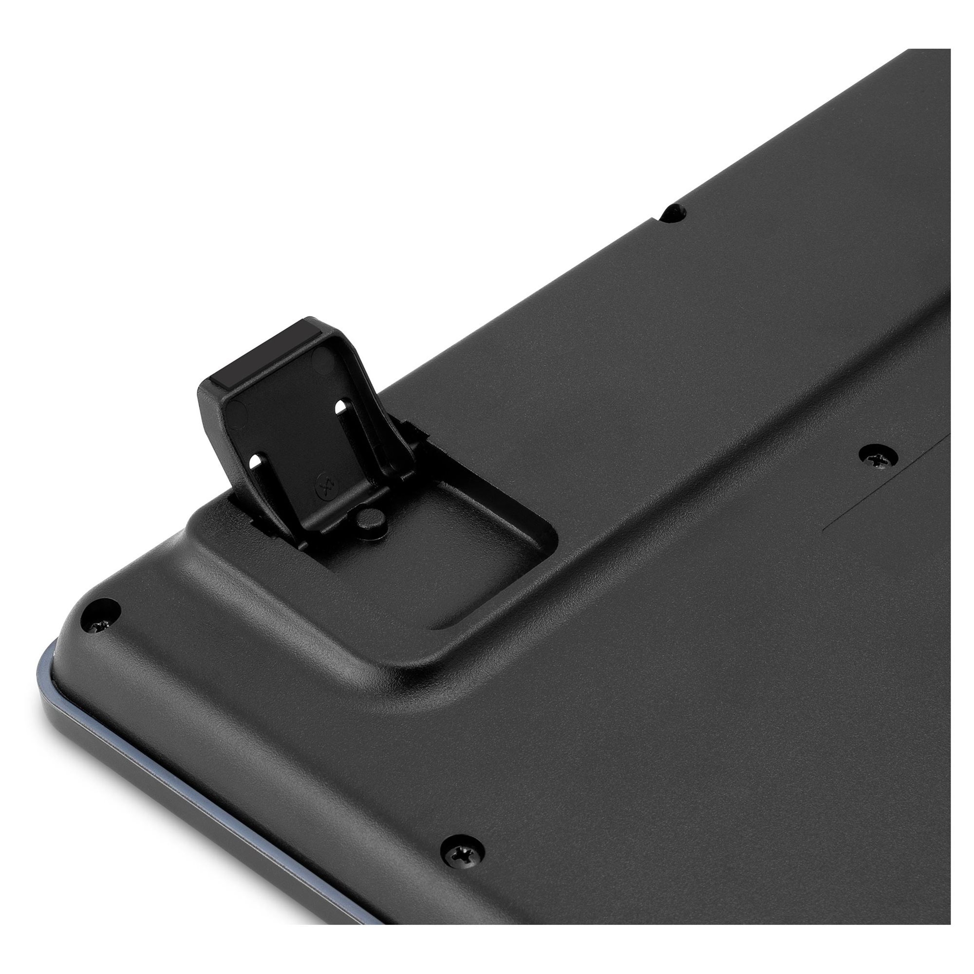 Όταν πληκτρολογείτε πάνω στο γραφείο σας, θα εκτιμήσετε τα ρυθμιζόμενα ανακλινόμενα στηρίγματα που εξασφαλίζουν την τέλεια θέση και ευστάθεια του πληκτρολογίου κατά τη χρήση του. Η φόρτιση μπορεί να γίνει εύκολα κατά τη χρήση του πληκτρολογίου, χωρίς να αναγκαστείτε να διακόψετε την εργασία σας με οποιονδήποτε τρόπο. Για εξοικονόμηση της διάρκειας ζωής της μπαταρίας, μπορείτε απλά να απενεργοποιείτε το πληκτρολόγιο όταν δεν το χρησιμοποιείτε. Έτσι επεκτείνετε τη διάρκεια χρήσης και τα διαστήματα φόρτισης. Το ασύρματο πληκτρολόγιο είναι επιπλέον ανθεκτικό σε χυμένα υγρά, χάρη στα κανάλια αποστράγγισης που βρίσκονται στην κάτω πλευρά του.