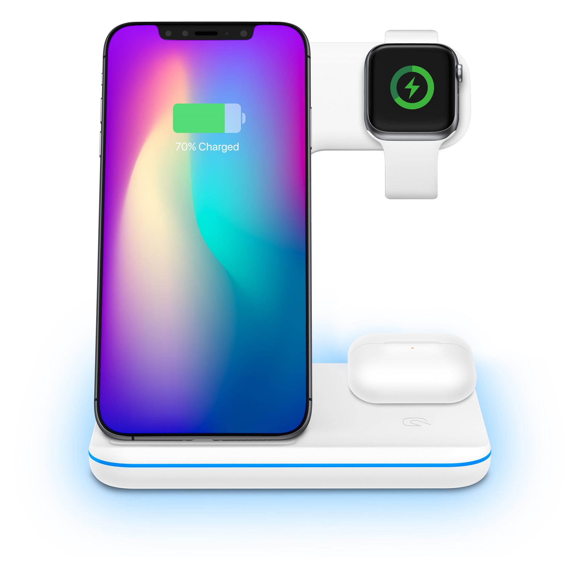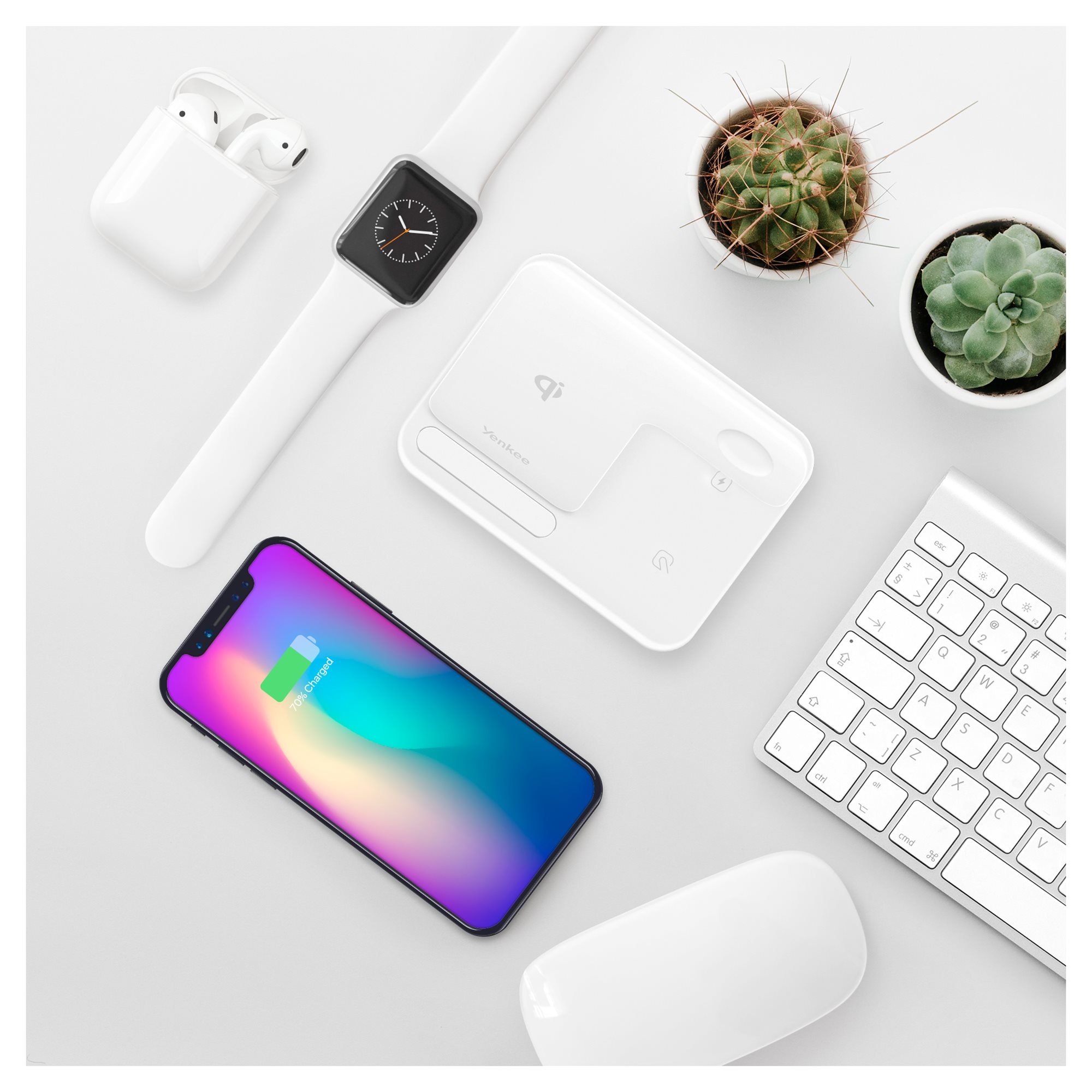 Ο 3 σε 1 ασύρματος φορτιστής YAC YENKEE 5301 δεν θα γίνει μόνο ένα αγαπημένο διακοσμητικό στοιχείο στο εσωτερικό του σπιτιού σας, αλλά και ένας πρακτικός βοηθός σας χωρίς τα ακαλαίσθητα περιττά καλώδια. Το αποτέλεσμα θα είναι να αντανακλά πλήρως τη σημερινή τάση για συμβατότητα και άνεση. Απλά τοποθετήστε το iPhone σας πάνω στην επιφάνεια φόρτισης και η ασύρματη φόρτιση αρχίζει αυτόματα είτε το τηλέφωνό σας είναι σε κάθετη είτε σε οριζόντια θέση. Το Apple Watch συνδέεται στον φορτιστή με ένα μαγνήτη και η φόρτιση επίσης αρχίζει αυτόματα, ενώ τα AirPods απλά χρειάζεται να τοποθετηθούν σε μια προβλεπόμενη επιφάνεια και η φόρτιση αρχίζει αμέσως.